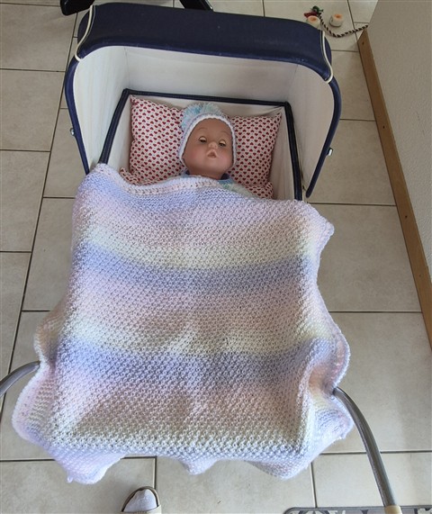 Couverture pour la poussette, tricotée "main" au point de riz
