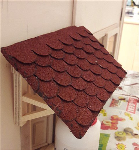 Le porche de la maison. Papier bitumineux posé sur le toit ainsi que la cheneau